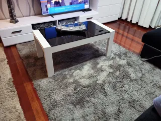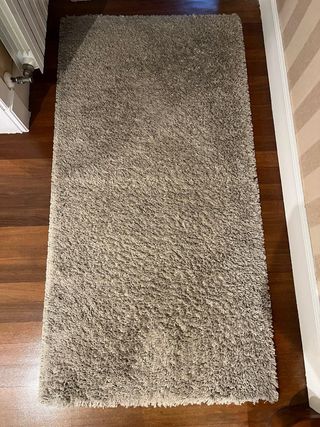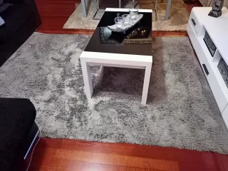 Alfombra de pelo largo en color gris. Aporta calidez y confort a cualquier estancia. - Tacto suave y agradable. - Diseño moderno y versátil. Alfombra en buen estado, muy cuidada ,ideal para salón, tamaño en las fotos,1,60x 2,20 No se envía por su tamaño Recoger en Bilbao Otra de color hueso ,se aprecia en la foto principal medidas 140x 200 por 70 euros.