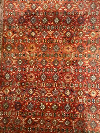 Elegante alfombra persa con un diseño intrincado y vibrante. Añade un toque de sofisticación a cualquier espacio. - Fabricada con lana de alta calidad. - Patrones geométricos y florales detallados. - Tonos rojos y multicolores que la hacen única. - Medidas: 2,32 x 1,64