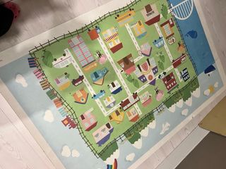 Alfombra de juego para niños con diseño de ciudad y carreteras. Ideal para crear un mundo de fantasía y aventuras. - Diseño detallado de calles, edificios y zonas verdes. - Superficie resistente y fácil de limpiar.