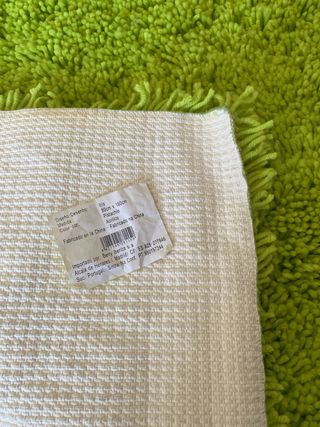 Alfombra de 200x140 cm Se puede lavar en la lavadora. Pesa 5kg máximo 30 grados. No mierde color. Una de las esquinas se ha soltado , habria que coserla.