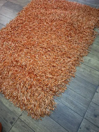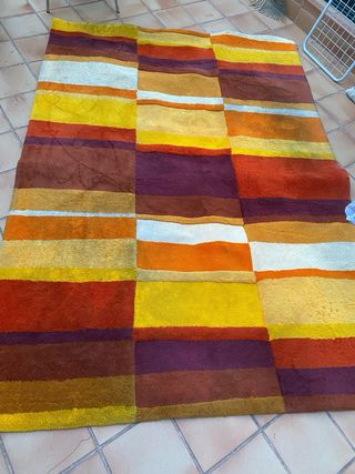 alfombra nueva sin estrenar 150 por 80 el pelo de lana de 4.5-5 cm preciosa, por tener mi hija alergia a los acaros al final no llegamos a estrenarla.