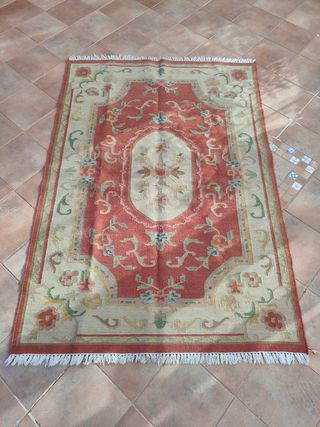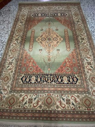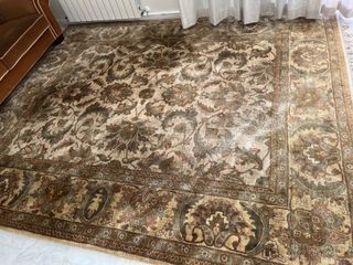 Preciosa alfombra de estilo persa tradicional. Es de gran tamaño y tiene colores beige y rojos. - Diseño clásico con detalles intrincados. - Material de lana. - Perfecta para añadir calidez y elegancia a cualquier espacio. Está en muy buen estado, y se vende por 150 euros, negociables