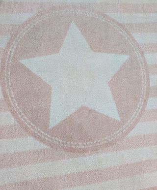 Alfombra infantil con un diseño de estrellas y rayas. Ideal para habitaciones infantiles. - Diseño de estrellas en los bordes. - Patrón de rayas horizontales. Apenas tiene uso ya que se la pusimos a la niña y a los pocos meses cambiamos los muebles de la habitación y ya no coge.