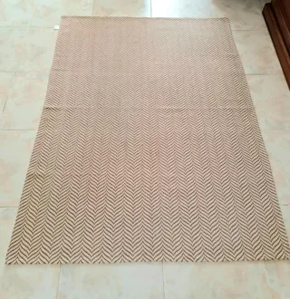 Alfombra rectangular con diseño geométrico en tonos beige y marrón, con materiales de calidad: yute y algodón. Tonos cálidos y elegantes en tu hogar. Perfecta durante todo el año. Fácil limpieza con aspiradora. SE VENDEN 2 UNIDADES, 1 = 85 euros, 2= 150 euros. SE VENDE POR MUDANZA, POSIBILIDAD DE ACERCAR A DOMICILIO. - Medidas: 160x240 cm. - Textura tejida a mano.