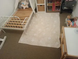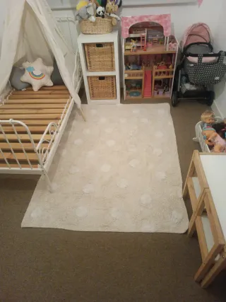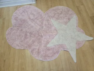 Preciosa alfombra con forma de nube y estrella, ideal para la habitación de un bebé o niña. Se encuentra en perfecto estado. - Diseño divertido y tierno. - Tacto suave y agradable.