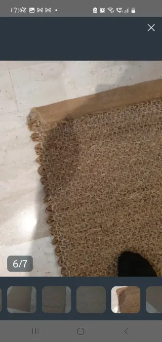 alfombra de yute grande. Tiene los desperfectos que se ven en mas fotos. medidas 160x 220 cm tengo dos unidades. vendo la unidad a 40€