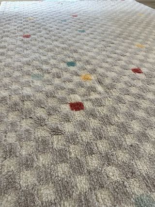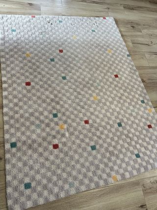 Alfombra gris con cuadros de colores