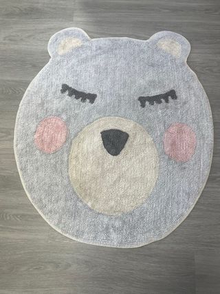 Encantadora alfombra redonda con diseño de osito, perfecta para habitaciones infantiles. Añade un toque tierno y acogedor. - Forma redonda. - Diseño de osito. - Tonos grises y rosas. - Lavable en lavadora.
