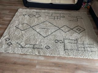 Preciosa alfombra de poliéster, color beige. Es suave y mullida, ideal para cualquier habitación. - Medidas aproximadas: 158 + 233 cm - Perfecta para añadir calidez y estilo a tu hogar - En muy buen estado