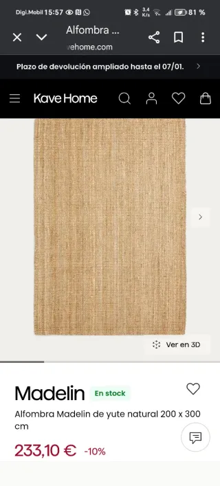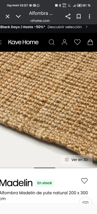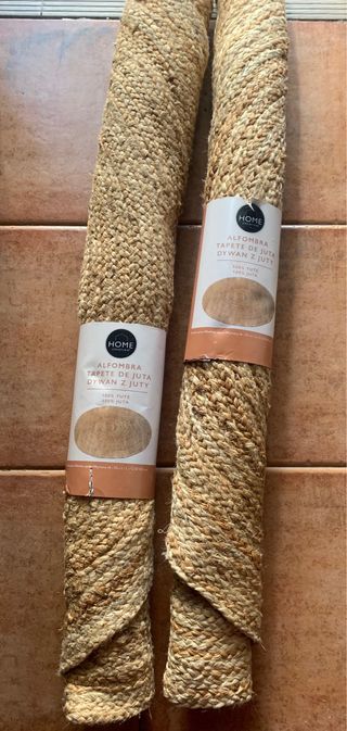 Alfombra de yute con un diseño tejido en espiral. - Material natural y resistente. - Tonos cálidos que combinan fácilmente. - Tienen que ir a recoger