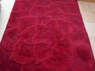 Preciosa alfombra de diseño portugués. Es de color rojo intenso y tiene un diseño floral con pétalos en relieve. - Medidas: 240 x 170 cm - Diseño carving con efecto 3D - Ideal para salón o dormitorio