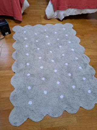 Alfombra infantil con un divertido diseño de galleta, perfecta para habitaciones de niños. Es lavable para facilitar su cuidado. - Forma de galleta con borde ondulado. - Estampado de lunares blancos. - Material suave y agradable al tacto.