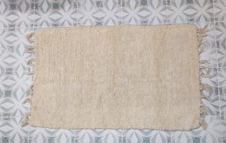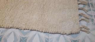 Alfombra de viscosa gordita y muy agradable al tacto. Color crudo natural Tiene un aspecto muy cálido. LAS FOTOS NO LE HACEN JUSTICIA 🙏🏻 MEDIDAS: ancho: 45 cm largo: 70 cm NUEVA SIN USAR