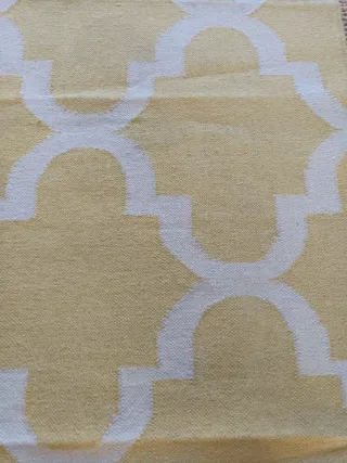 Alfombra amarilla y blanca con diseño geométrico