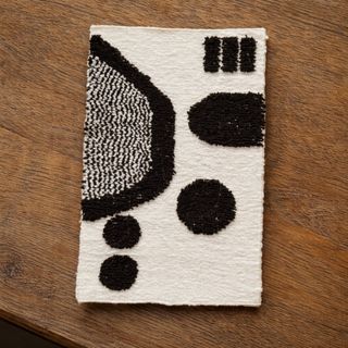 Alfombra de diseño abstracto de la marca Meso Goods. Su textura y patrón la hacen única. Diseñada por el AD100 Diego Olivero Studio - Fabricada con lana de alta calidad. - Diseño moderno en blanco y negro.