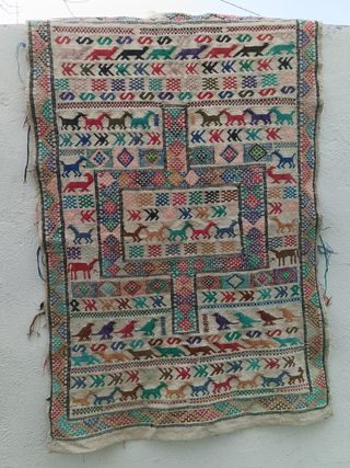 ALFOMBRA DE LANA HECHA A MANO ARTESANÍA MEDIDAS 140*90 Para suelo o colgar en pared DECORACIÓN INTERIORISMO