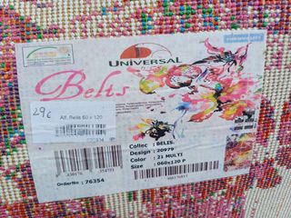 Alfombra de salón con un bonito dibujo floral. Del fabricante ANTONIO PEREZ ADSUAR,SA de Sevilla Gran calidad de tejido. - Diseño color beiz y multicolor. - Confeccionada en pura lana virgen - Resistente a a luz y agua - Antifuego natural - Antipolilla - Muy buena presencia por sus colores claros y motivos alegres para salones clásicos y modernos. Medidas: 1,40 m por 3,20 m Grosor: 0,7 mm Peso: 10 kg