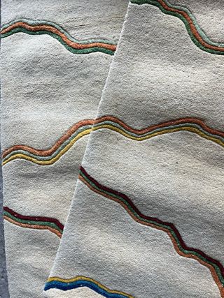 Conjunto de tres alfombras de dormitorio con un diseño moderno y texturas agradables. unas de 70x140 y dos de 60x120. - Diseño de líneas onduladas en varios colores. - Material de lana.
