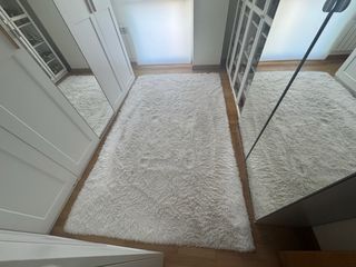 Preciosa alfombra de pelo largo, blanca y suave. Ideal para añadir calidez y confort a cualquier habitación. Medidas: 2 alfombras 90cm x 120cm 2 alfombras de 90x70 - Perfecta para dormitorios o salas de estar. - Dos alfombras incluidas en la venta. - Aspecto mullido y esponjoso.
