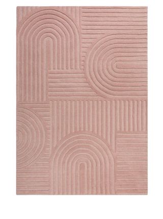 Alfombra de lana rosa con diseño geométrico