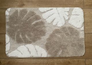 Alfombras de baño con un bonito diseño de hojas en tonos marrones y blancos. Aporta un toque acogedor a tu baño. - Medida : 72 x 47 cm - Diseño de hojas. - Textura suave y agradable. - 2 unidades. Sin estrenar. Antideslizante.