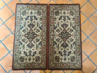 Conjunto de dos alfombras turcas con un diseño intrincado. Se venden juntas o por separado a 40€ cada una. - Color principal: beige. - Tonos secundarios: marrón y azul. - Borde decorativo en color granate