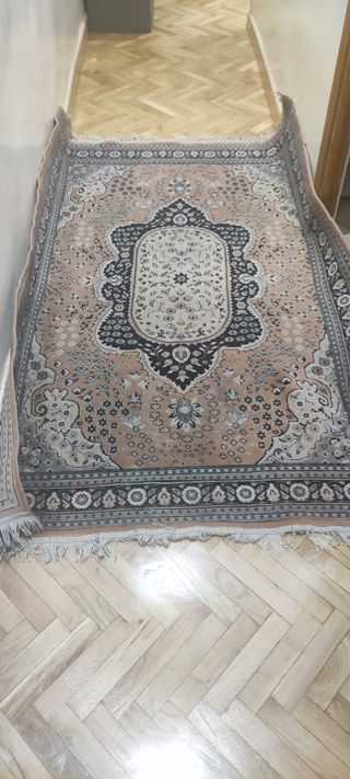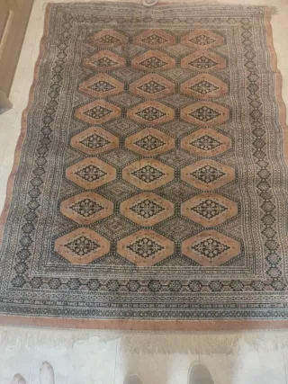 Último día de recogida 12/11 Vendo alfombra clásica de estilo persa/oriental, perfecta para dar un toque elegante y cálido a cualquier espacio. Dimensiones: ( 2m x 1,30 m) Material: ( es lana, sintético ). Estado: Usada pero bien cuidada. Sin manchas visibles ni daños importantes. Limpia y lista para usar. Diseño: Ornamental con colores beige, negro y azul, y patrón central simétrico. Incluye flecos en los extremos. Ideal para pasillos, salones o entradas. Solo la vendo porque necesito más espacio. Precio negociable. Entrega: Entrega en mano en (tu ciudad o barrio)envío cargo al comprador.