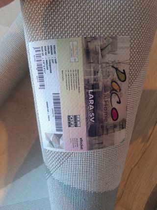 - Alfombra vinílica lisa ( no rugosa, sin relieve) -Medidas 97 x 4'44 mts pasillero, características en fotos, inífuga, antideslizante, sin uso , nueva a estrenar en su caja. -Ideal para entrada, pasillo, terraza..., - Se compró online con medidas equivocadas y el proveedor no admite devoluciones, costó 192,25€+ IVA 232,62€. - También se puede recortar y hacer varias alfombras de una. - No envío. - Adjunto factura en fotos. Recoger en Parla o Móstoles.