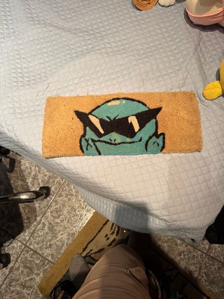 Alfombra decorativa con diseño de Pokemon. - Diseño de personaje con gafas de sol. - Base de tela resistente.