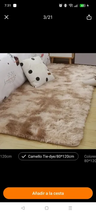 Alfombra de gran tamaño con un tacto suave y agradable. - Medidas: 165 x 230 cm. - Fibra de poliéster,pelo largo despeinado, no coge mucho polvo. - Marrón y beis - Solo necesita una ligera limpieza por higiene, está limpia.