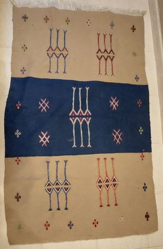 Alfombra Marruecos 95 x 156 cm comprado hace años en Marruecos. EI motivo de venderlo es que quiero cambiar decoración de mi casa. También se puede usar de tapiz.