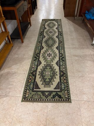 Alfombra de pasillo con un diseño geométrico llamativo. Aporta un toque de estilo a tu hogar. - Diseño con motivos geométricos. - Tonos verdes y beige. Precios de 20 a 40€ siguenos en instagram @astrorecogida disponemos de tienda