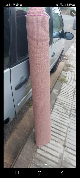 Alfombra enrollada en buen estado. - Color marrón rosado. - Material de tela.