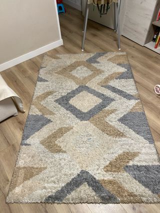 Vendo Alfombra de gran tamaño con un diseño geométrico moderno. Añade un toque de estilo a cualquier espacio. - Patrón de rombos y líneas en tonos beige y gris. - Textura suave y agradable al tacto. - Pelo grueso y calentita. - Medidas 122 x 190.
