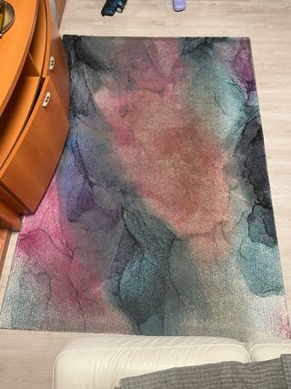 Alfombra con un diseño abstracto y moderno que añade un toque de color a cualquier espacio. Su textura suave la hace muy agradable al tacto. Precio negociable 140 cm x 2