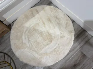 Alfombra redonda beige y blanca