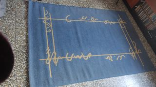 Alfombra de diseño azul con detalles dorados – 1,90 x 1,30 m 🌀 Elegante y original, ideal para dar un toque acogedor a cualquier salón, estudio o habitación. ✔️ Color azul intenso con bordes decorados en tonos dorados estilo caligráfico. ✔️ Buen estado general, sin manchas ni roturas. ✔️ Tamaño amplio: 1,90 x 1,30 metros. 🎯 Perfecta para suelos fríos, absorbe sonido y aporta confort. 📸 En las fotos se ve colocada en una habitación para que te hagas una idea del tamaño. 💬 Si necesitas más detalles o fotos, ¡pregunta sin compromiso! #Alfombra, #DecoraciónHogar, #EstiloOriginal, #SegundaMano, #DecoraciónSalón, #TextilHogar,