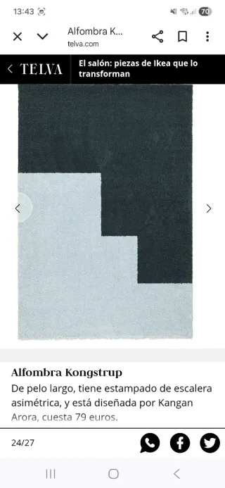 Alfombra Kongstrup Ikea 2 tonos de azul.