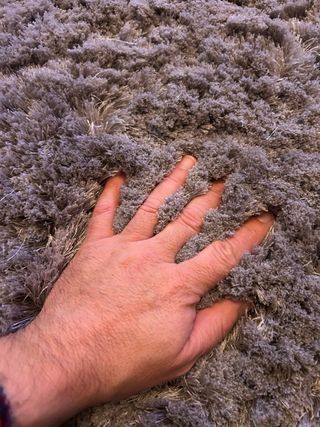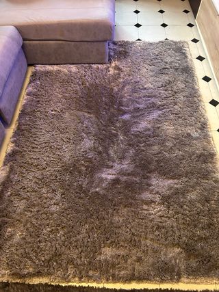 Alfombra artesanal, de alta calidad, hecha a mano en la India (ver foto de etiqueta). Material SEDA SINTÉTICA (antialérgica y de fácil mantenimiento) Alfombra de pelo largo o shaggy. Color marrón chocolate, con brillo. En las fotos sale con diferentes tonalidades por el brillo, pero es de un color marrón oscuro uniforme. Tacto suave y agradable, con textura mullida Medidas 230 x 170 cm Enrollada mide 163 x 23 x 23 aproximadamente (son las medidas que pongo del producto, para que calcule Wallapop los gastos de envío correctamente) Peso 10 kg (largo pelo 4,5cm)