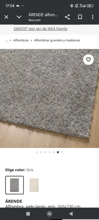 Alfombra IKEA gris pelo largo 160x230 cm