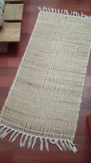 Alfombra de yute rectangular. 110x 60cm Ideal para pie de cama o recibidor. - Material natural. - Textura trenzada.
