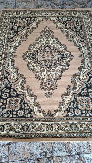 Alfombra con un diseño tradicional y elegante, perfecta para añadir un toque de calidez a tu hogar. - Diseño geométrico central. - Bordes decorativos. - Patrones intrincados en los laterales. Se debe limpiar por polvo. Pero no tiene manchas Se entrega en Manresa o Terrassa