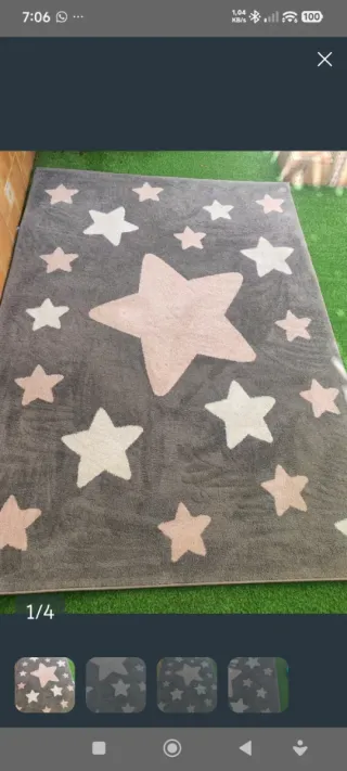 Alfombra estrellas gris y rosa