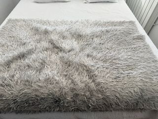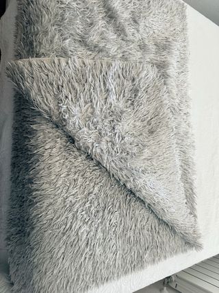 Alfombra pelo gris recién sacada de la tintorería,sin quitar el plástico,para no ensuciarse. Negociable