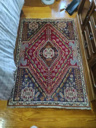 Vendo alfombra de lana 100%, recién lavada en lavandería y en perfecto estado. 📏 Medidas:b2,36 × 1,67 m Alfombra de alta calidad, gruesa, decorativa y lista para usar. 📍 Entrega en mano en Vigo.