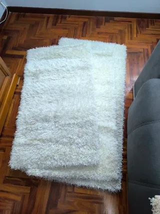 Se vende un conjunto de tres alfombras shaggy blancas de tacto suave y mullido. Dos unidades de 60x110cm Una unidad de 67x 130cm Nuevas sin usar