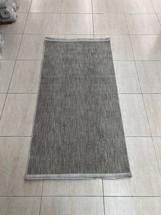 Alfombra de algodón con un diseño tejido y flecos en los extremos. - Textura suave y natural. - Tonos neutros que combinan fácilmente. 55x80 80 unidades, se vende todo el lote completo