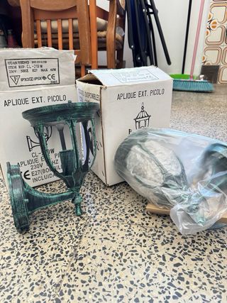 Farolillos de pared exterior nuevos. -15€ cada uno y los dos 30€ -Estan completamente nuevos, no se han usados nunca. -Gente seria.