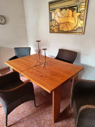 Mesa para salón/comedor en perfecto estado Incluye las sillas (En el perfil tambien encontrarás una mesa baja a juego) se pueden ir las dos por 100eur Ancho 90cm Alto 77cm Largo 150cm