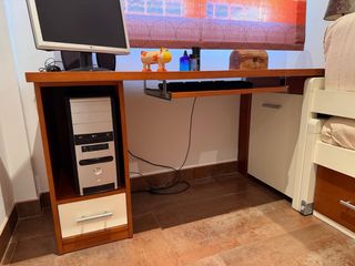 Conjunto de muebles para habitación infantil o juvenil. - Cama nido con dos colchones. - Escritorio integrado y silla de ruedas - Cajoneras para almacenamiento, 4 cajones mas uno grande del escrtorio.